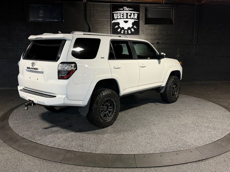Reliable and rugged SUV with legendary Toyota durability, equipped with 4-wheel drive for year-round confidence. Custom wheels and tires give it an aggressive look while still delivering comfort and capability for daily driving or weekend adventures.