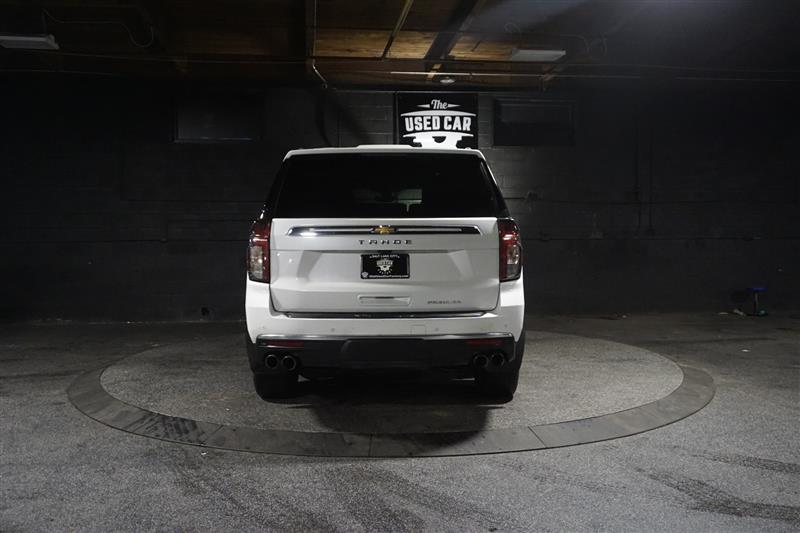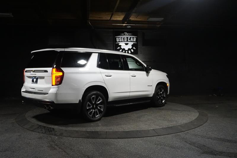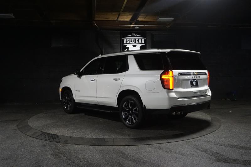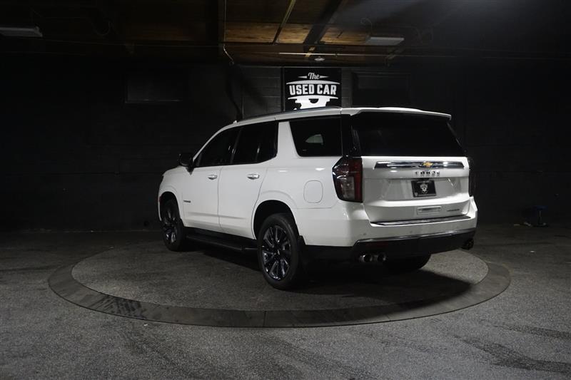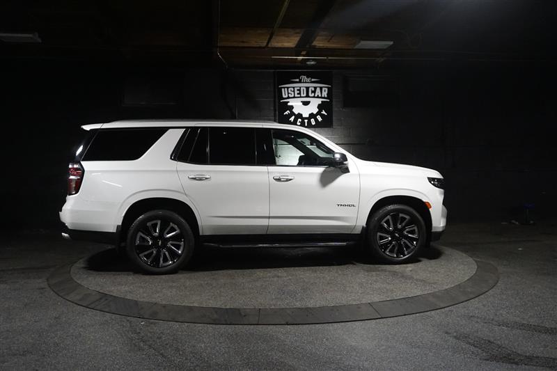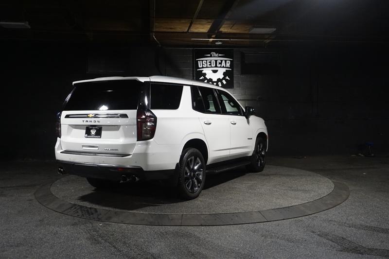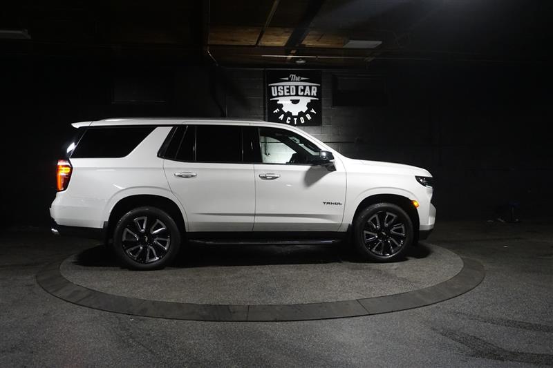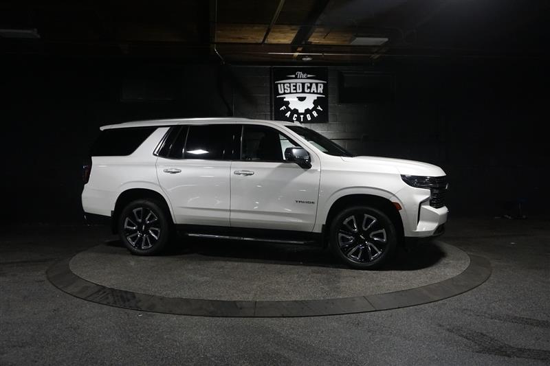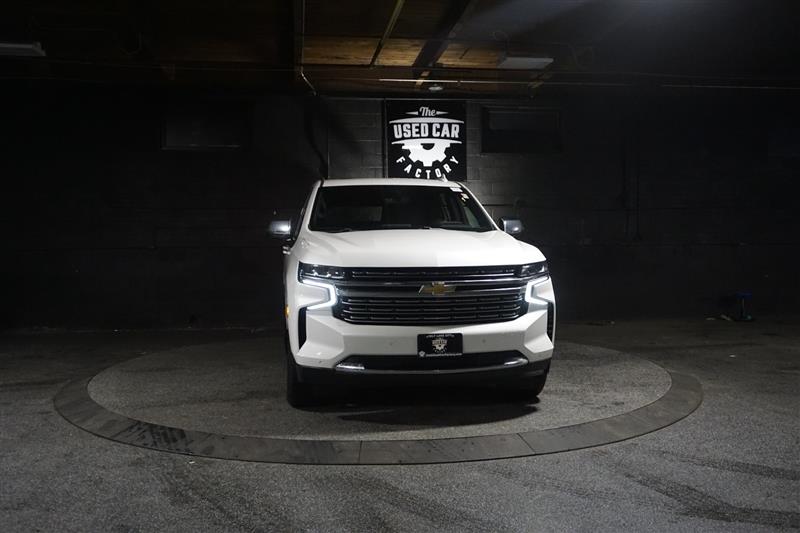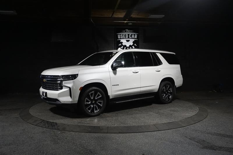 This 2021 Chevrolet Tahoe Premier 4WD in Summit White with Jet Black interior is a full-size SUV that delivers luxury, power, and space all in one. The bold exterior paired with the refined black leather interior gives it a sharp, upscale look inside and out.